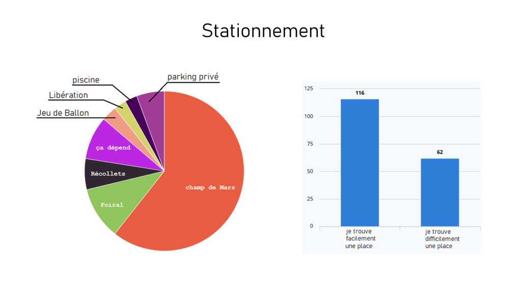 Se garer toujours au même endroit. Enfin, j’observe avec un certain étonnement les réponses à une question sur le lieu de stationnement. Les clients citent spontanément un parking, celui où ils ont leurs habitudes. Seules environ 10% des personnes interrogées répondent: « ça dépend ».
